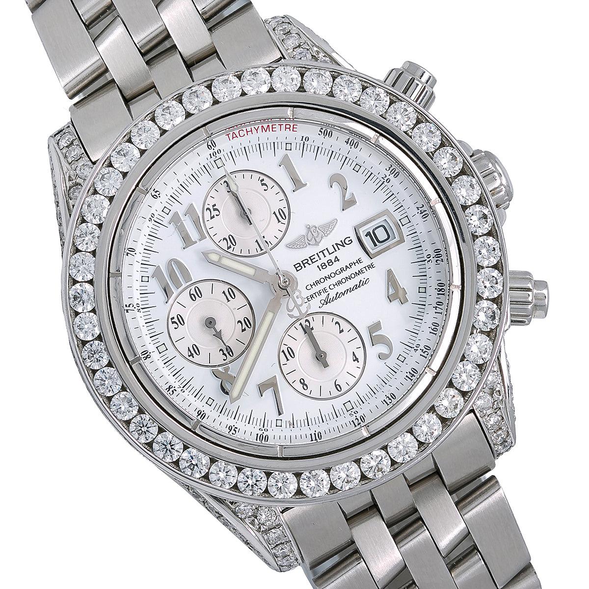 Breitling Chronomat Evolution 44MM A13356 White Roman Dial Diamond Bezel Stainless Steel Bracelet